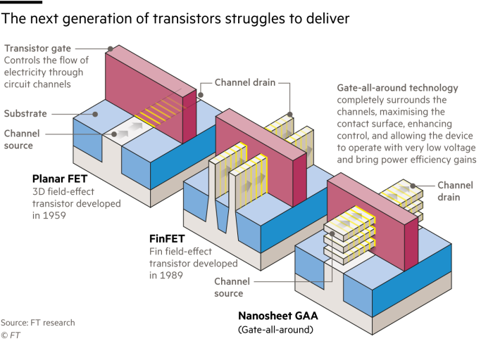 几十年来,芯片制造商一直致力于制造更加紧凑的产品。芯片上的晶体管越小,能耗越低,速度也越高。如今,“2纳米”和“3纳米”等术语被广泛用作每一代新一代芯片的速记,而不是半导体的实际物理尺寸。
